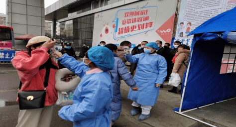 (眉山医院医护人员在眉山长途汽车客运站监测体温)